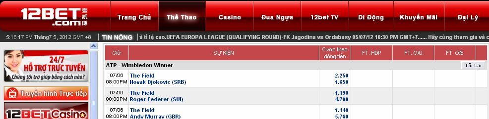 Xin chúc mừng thành viên 12Bet tham gia đã chọn Murray vô địch Olympic 2012 tỷ lệ 5.67